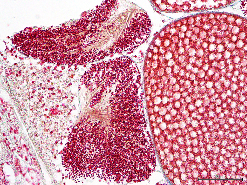 Reproductive histology of mesophotic coral tissues informs estimates of the rates of gametogenesis, fecundity, and spawning time. Seen here are late stage Orbicella spp. ova and sperm