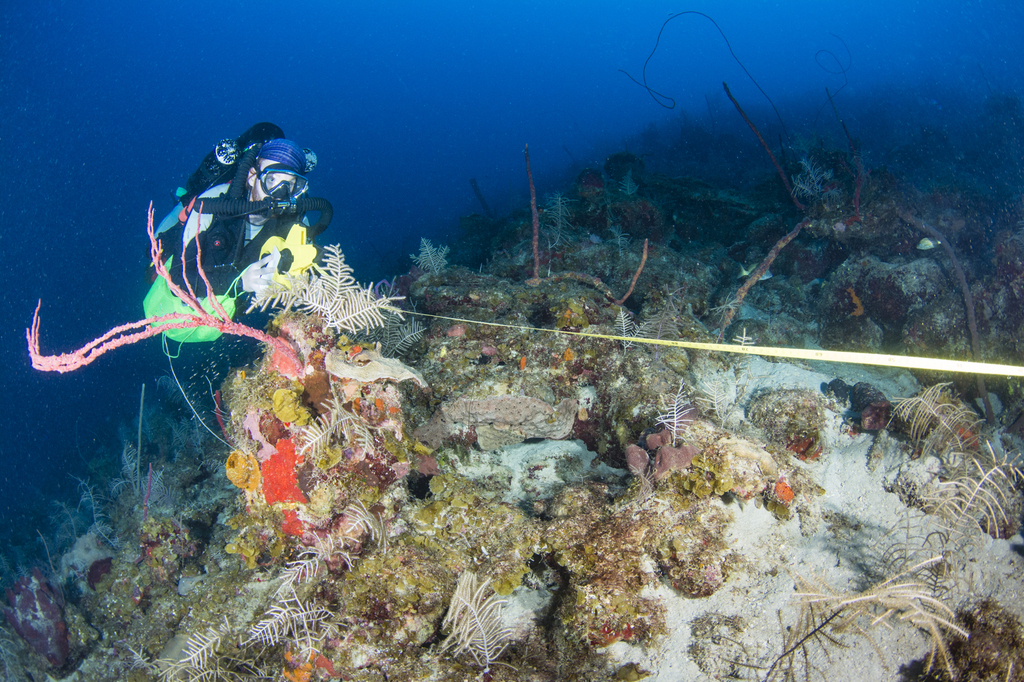 Jack Laverick Reeling in a transect tape after a Benthic survey at ...