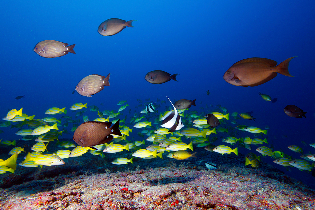 The first challenge presented by this study was actually collecting some useful data. Mesophotic fish communities are poorly described, so we needed to rely on a collaborative effort between a number of researchers with different skills. Conducting transects at multiple depth intervals through the mesophotic zone requires both a good knowledge of fish biodiversity and extremely good technical diving skills – a combination possessed by only a handful of the 7 million people on our planet. Fortunately, we managed to develop a collaborative team that had all the required bases covered. Even with this expertise, the mesophotic zone is a challenging habitat to study – the locations examined are remote, and far removed from emergency facilities such as recompression chambers. In the North-West Hawaiian Islands (NWHI) in particular, many of the sites surveyed had never been dived previously, so even finding suitable diving sites was a first challenge. Even when suitable sites were identified, some dives had to be abandoned due to ripping currents or unsuitable sandy substrate. Having already descended to 60 m, this would result in the loss of an entire day’s work.