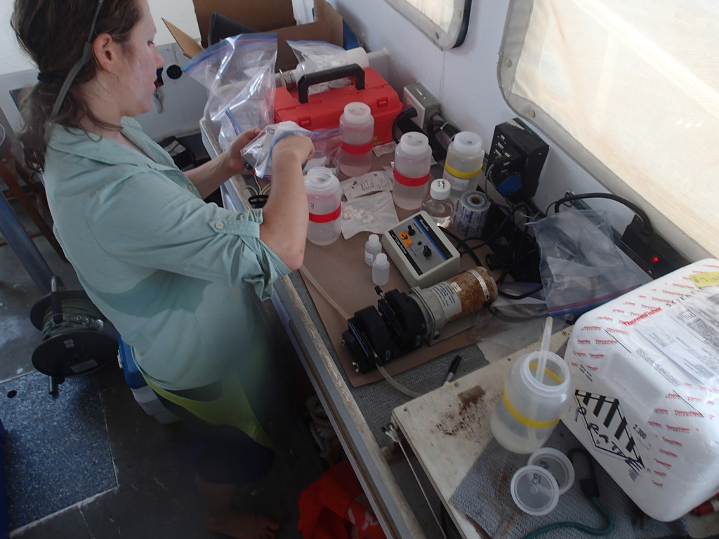 We definitely learned a lot about how to collect water from a deep, narrow hole! We ended up using a combination of hand-collected samples (thanks to the technical divers) and hand-cast Niskin bottles, which we had to trigger manually. One day we spent several hours just sending down bottles and retrieving them by hand while the boat had to stay in position over the hole. It would be great if we could get an ROV down there, but that’s unlikely to happen for this project.