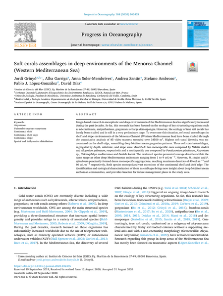 Image-based research in mesophotic and deep environments of the Mediterranean Sea has significantly increased during the past decades. So far, this research has been focused on the ecology of key structuring organisms such as scleractinians, antipatharians, gorgonians or large demosponges. However, the ecology of true soft corals has barely been studied and is still in a very preliminary stage. To overcome this situation, soft coral assemblages in shelf and slope environments of the Menorca Channel (Western Mediterranean Sea) have been studied through the quantitative analysis of 85 video transect recorded over 38500 m2. Highest soft coral diversity was encountered on the shelf edge, resembling deep Mediterranean gorgonian patterns. Three soft coral assemblages, segregated by depth, substrate, and slope were identified: two monospecific ones composed by Nidalia studeri and Alcyonium palmatum, respectively and a multispecific one composed by Paralcyonium spinulosum, Alcyonium sp., Chironephthya mediterranea and Daniela koreni. The evaluated species presented average densities within the same range as other deep Mediterranean anthozoans ranging from 1 to 9 col.·m−2. However, N. studeri and P. spinulosum punctually formed dense monospecific aggregations, reaching maximum densities of 49 col.·m−2 and 60 col.·m−2 respectively. Both species monopolized vast extensions of the continental shelf and shelf edge. The identification and ecological characterization of these assemblages brings new insight about deep Mediterranean anthozoan communities, and provides baseline for future management plans in the study area.