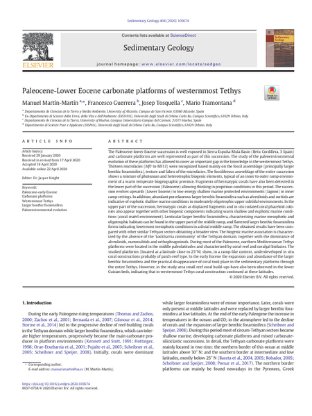 The Paleocene-lower Eocene succession is well exposed in Sierra Espuña-Mula Basin (Betic Cordillera, S Spain) and carbonate platforms are well represented as part of this succession. The study of the paleoenvironmental evolution of these platforms has allowed to cover an important gap in the knowledge in the westernmost Tethys. Thirteen microfacies (Mf1 to MF13) were recognized based mainly on the fossil assemblage (principally larger benthic foraminifera), texture and fabric of the microfacies. The fossiliferous assemblage of the entire succession shows a mixture of photozoan and heterotrophic biogenic elements, typical of an inner to outer ramp environment of a warm temperate biogeographic province. Fragments of hermatypic corals have also been detected in the lower part of the succession (Paleocene) allowing thinking in propitious conditions in this period. The succession evolves upwards (Lower Eocene) to low-energy shallow marine protected environments (lagoon) in inner ramp settings. In addition, abundant porcelaneous larger benthic foraminifera such as alveolinids and soritids are indicative of euphotic shallow marine conditions in moderately oligotrophic upper subtidal environments. In the upper part of the succession, hermatypic corals as displaced fragments and in situ isolated coral phaceloid colonies also appear together with other biogenic components indicating warm shallow and euphotic marine conditions (coral-maërl environment). Lenticular larger benthic foraminifera, characterizing marine mesophotic and oligotrophic habitats can be found in the upper part of the middle ramp, and flattened larger benthic foraminifera forms indicating lowermost mesophotic conditions in a distal middle ramp. The obtained results have been compared with other similar Tethyan sectors obtaining a broader view. The biogenic marine association is characterized by the absence of the ‘Lockhartia community’ of the Tethyan domain, together with the dominance of alveolinids, nummulitids and orthophragminids. During most of the Paleocene, northern Mediterranean Tethys platforms were located in the middle paleolatitudes and characterized by coral-reef and coralgal biofacies. The studied platforms (located at a latitude close to 25°N) show, in a ramp-like context, underdeveloped in situ coral constructions probably of patch-reef type. In the early Eocene the expansion and abundance of the larger benthic foraminifera and the practical disappearance of coral took place in the sedimentary platforms through the entire Tethys. However, in the study area small reef coral build-ups have also been observed in the lower Cuisian beds, indicating that in westernmost Tethys coral construction continued at these latitudes.