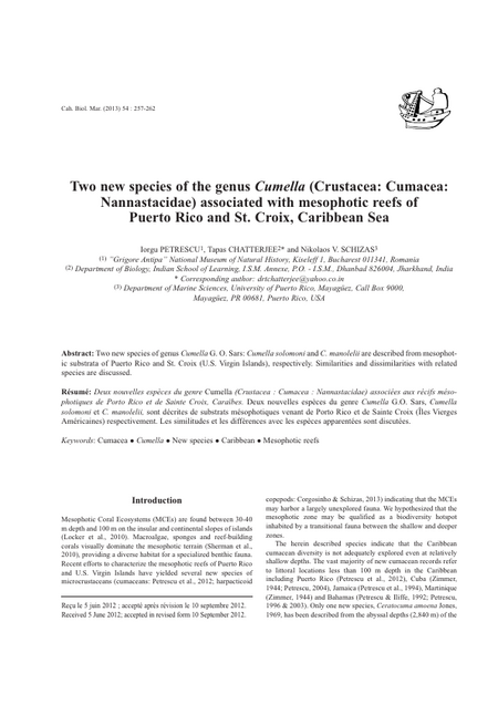 Two new species of genus Cumella G. O. Sars: Cumella solomoni and C. manolelii are described from mesophotic substrata of Puerto Rico and St. Croix (U.S. Virgin Islands), respectively. Similarities and dissimilarities with related species are discussed.