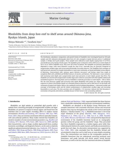 The distribution, abundance, composition, and growth history of rhodoliths were investigated based on 222 grab samples and 202 submarine photographs taken from 223 sites arranged at regular intervals and on 13 additional samples (5 dredge and 8 grab samples). These samples were collected at water depths ranging from 15 to 970 m around Okinawa-jima, Ryukyu Islands, Japan. The rhodoliths grow in deep fore-reef to shelf areas at water depths of 50 to 135 m. Where rhodoliths occur, they cover 45% of the sea bottom. The rhodoliths are primarily spheroidal to ellipsoidal in shape (with mean diameters usually less than 8 cm); internally they are primarily composed of nongeniculate coralline algae and an encrusting foraminifer Acervulina inhaerens. The rhodoliths have envelopes of well-preserved, concentric to irregular laminations or, much more commonly, are bored and display various degrees of bioerosion. Constructional voids (primary spaces between encrusters) and borings range from empty to completely filled with unlithified and lithified mixtures of micrites and bioclasts. The bioerosion is more extensive with increasing water depth and is progressively much more pervasive at water depths greater than 90 m. The rhodoliths are covered with nongeniculate coralline algae and A. inhaerens associated with other epilithic skeletal and nonskeletal organisms. The living biotic cover on rhodoliths is relatively great down to water depths ~ 100 m; below this, the cover decreases rapidly with increasing water depth. Rhodoliths with similar size, shape, and composing organisms to those in the Ryukyu Islands are commonly found on deep fore-reef to shelf areas or on the banks and seamounts of tropical reef regions, likely as the combined result of ecological degradation (=decreased number and coverage) of hermatypic corals and the relative predominance of nongeniculate coralline algae and encrusting foraminifers in such areas. The slow accretion rates of rhodoliths (< 0.1 mm/year) indicate that their formation is commonly to frequently intermittent, probably because of their burial in the surrounding sediment.