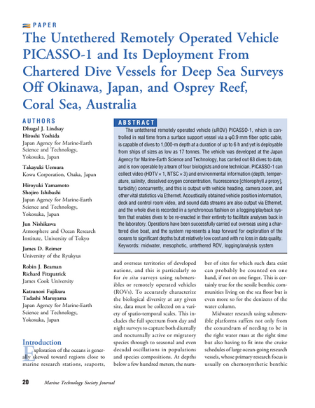 Lindsay DJ, Yoshida H, Uemura T, Yamamoto H, Ishibashi S, Nishikawa J, Reimer JD, Beaman RJ, Fitzpatrick R, Fujikura K